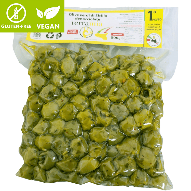 Olive Nocellara del Belice di provenienza dalla Sicilia, in particolare dalla Valle del Belice.