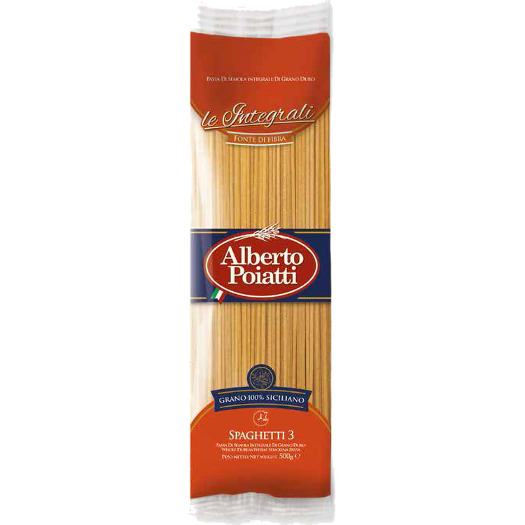 Realizzati con grano integrale selezionato, gli Spaghetti Integrali Poiatti provengono da coltivazioni responsabili, rispettose dell'ambiente e della salute. La loro trafilatura al bronzo conferisce alla superficie una texture ideale per catturare e trattenere i sughi, assicurando che ogni forchettata sia piena di gusto.