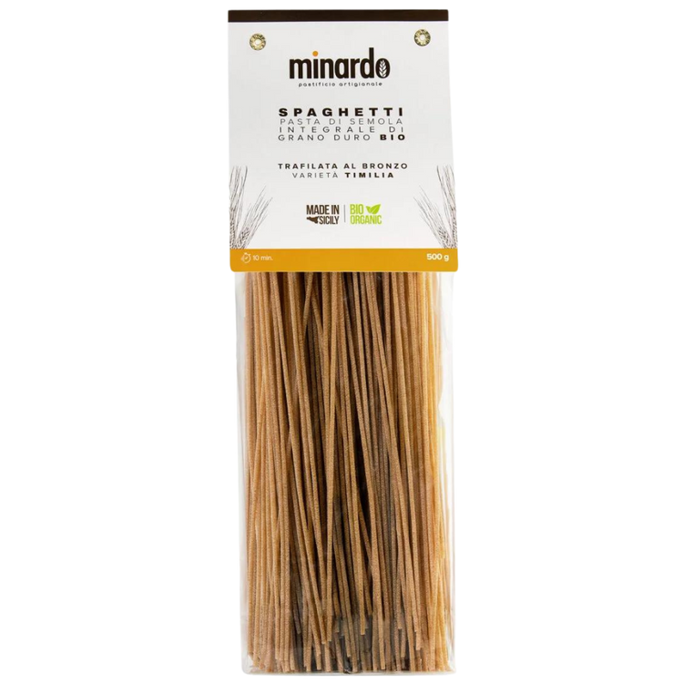 Iconici, versatili, immancabili in cucina! Gli Spaghetti Bio Integrali Timilia di Minardo N.5 sono un formato più corposo del classico spaghetto, perfetto per sughi saporiti. Tempo di cottura: 10 minuti.