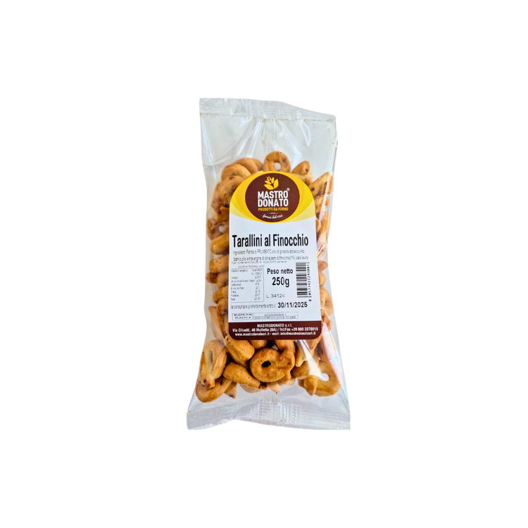 Croccanti, profumati e irresistibili: i Tarallini al Finocchio racchiudono il sapore autentico della tradizione pugliese, con il gusto aromatico dei semi di finocchio.