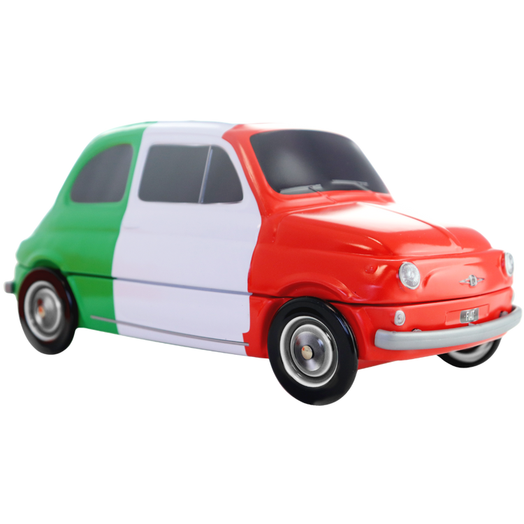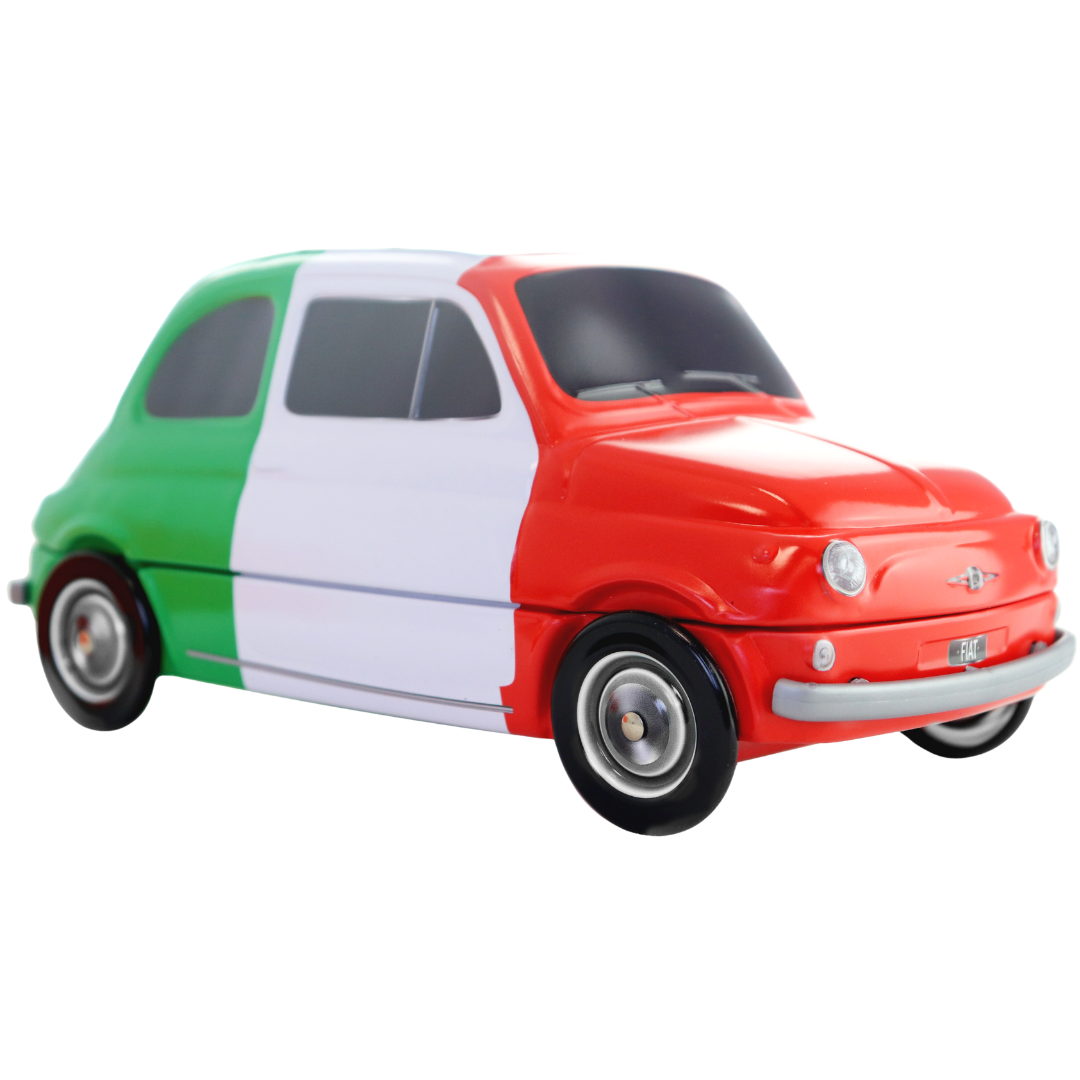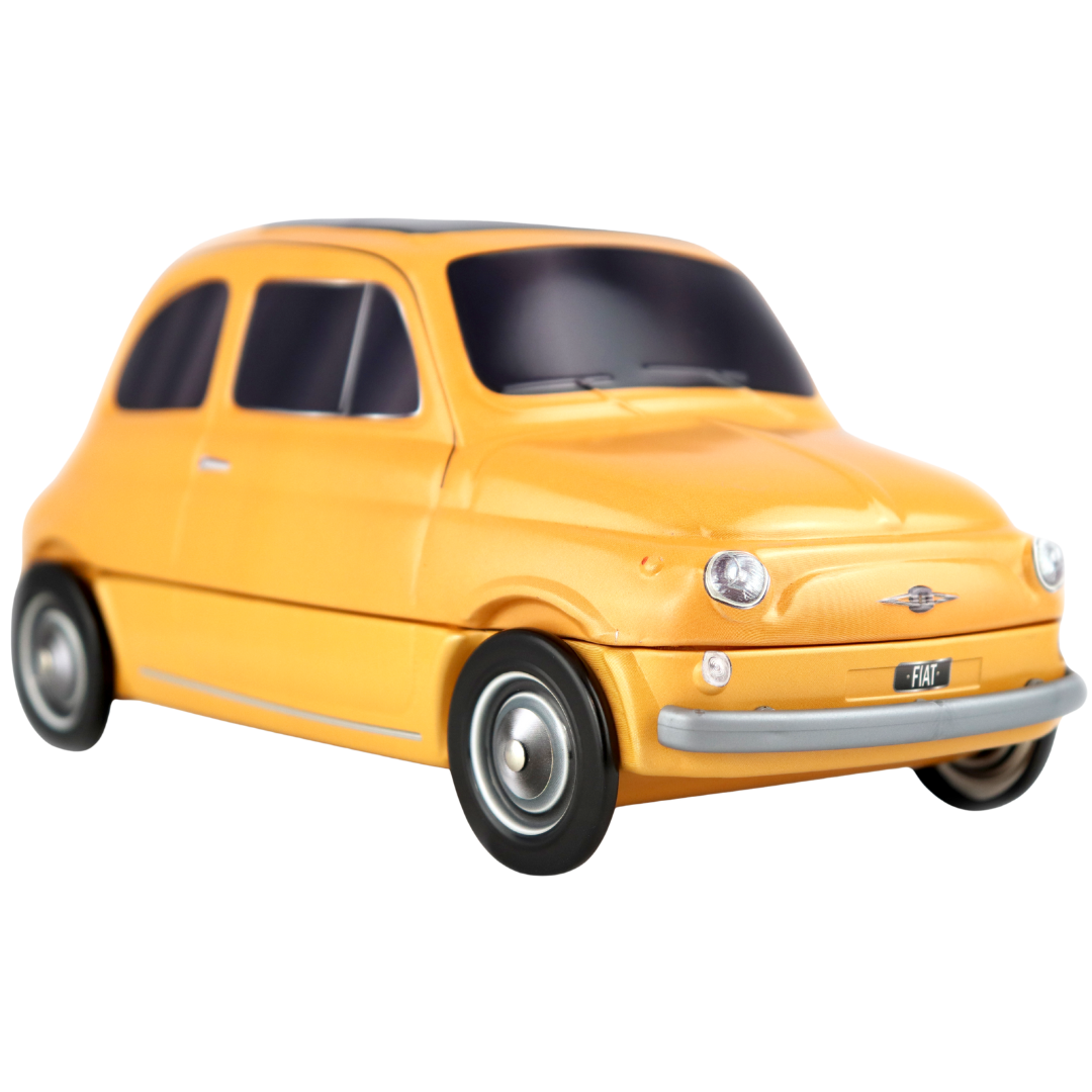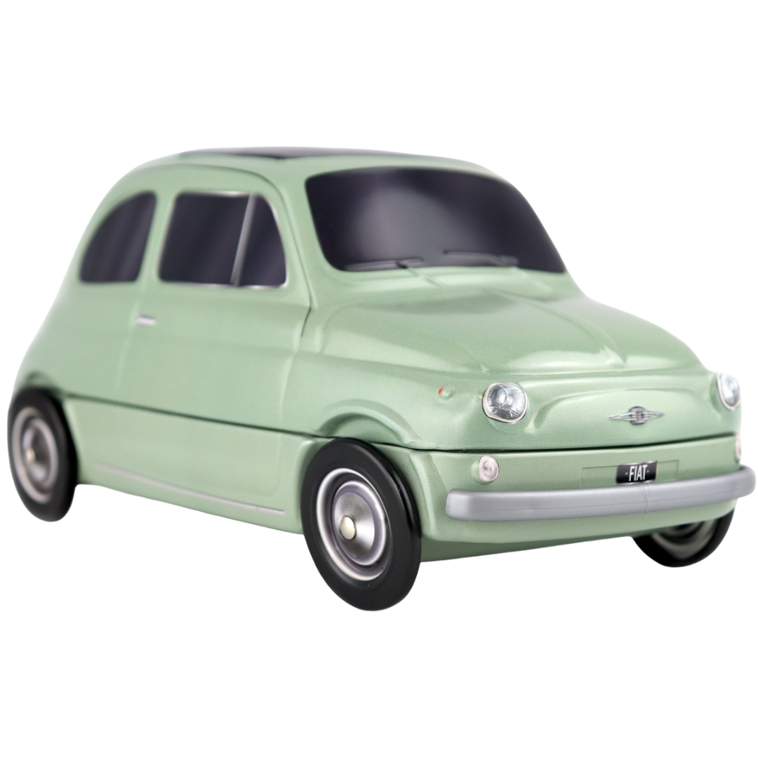 Entdecken Sie eine Ikone italienischen Designs und Geschmacks: die Fiat 500 aus Blech von Dolce Vita. Diese exklusive, sammelbare Vintage-Dose enthält 300 g handgemachte sizilianische Torroncini in den Geschmacksrichtungen Pistazie, Zitrone, Orange und Schokolade.
