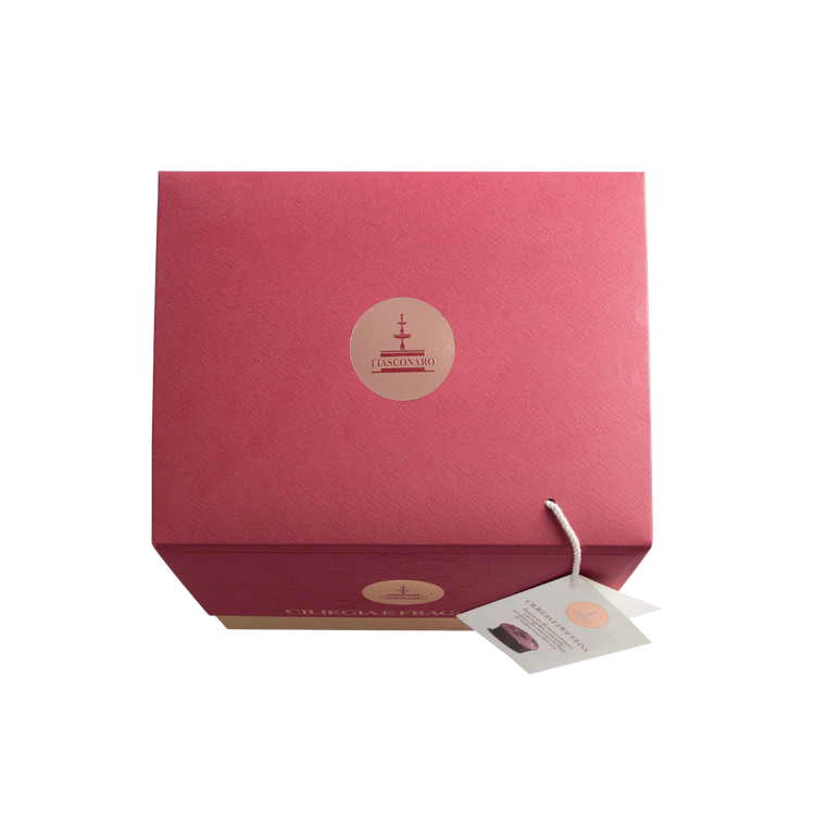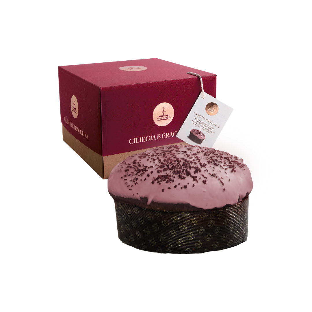 Soft Wheat Flour, semi-candied strawberries (19%) (strawberries, glucose-fructose syrup, sucrose, acid: citric acid, preservative: potassium sorbate), BUTTER, sugar, fresh barn EGGS (9%), couverture chocolate (8,6%) (sugar, cocoa butter, whole milk powder, cocoa mass, emulsifier: SOY lecithin, acid: citric, natural vanilla flavouring. Cocoa solids: 40.3% minimum), extra cherry jam (8%)(cherries (Fruit used: 90g per 100g), sugar, glucose syrup, lemon juice), stable-fresh egg yolk (4%), natural yeast (wheat flour), Sicilian honey, orange paste (orange peel, sugar, glucose-fructose syrup, lemon juice), invert sugar syrup, raspberry crispies (0.8%) (cocoa butter, raspberries (29%), sugar, tapioca starch, concentrated raspberry juice), emulsifier monoandiglycerides of fatty acids, cocoa butter, skimmed milk powder, salt, natural flavours, vanilla, mint essential oil.