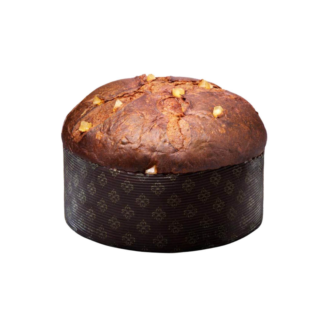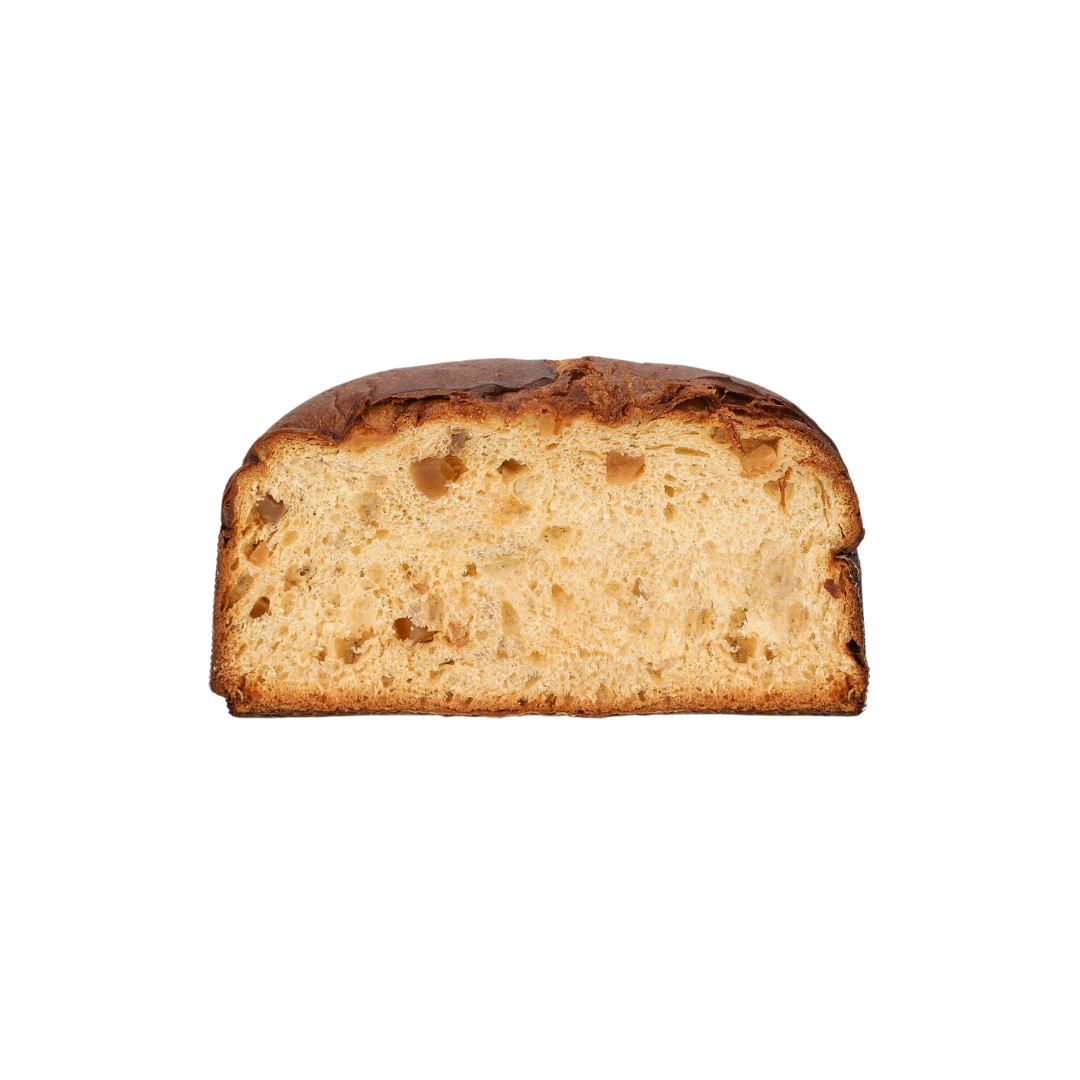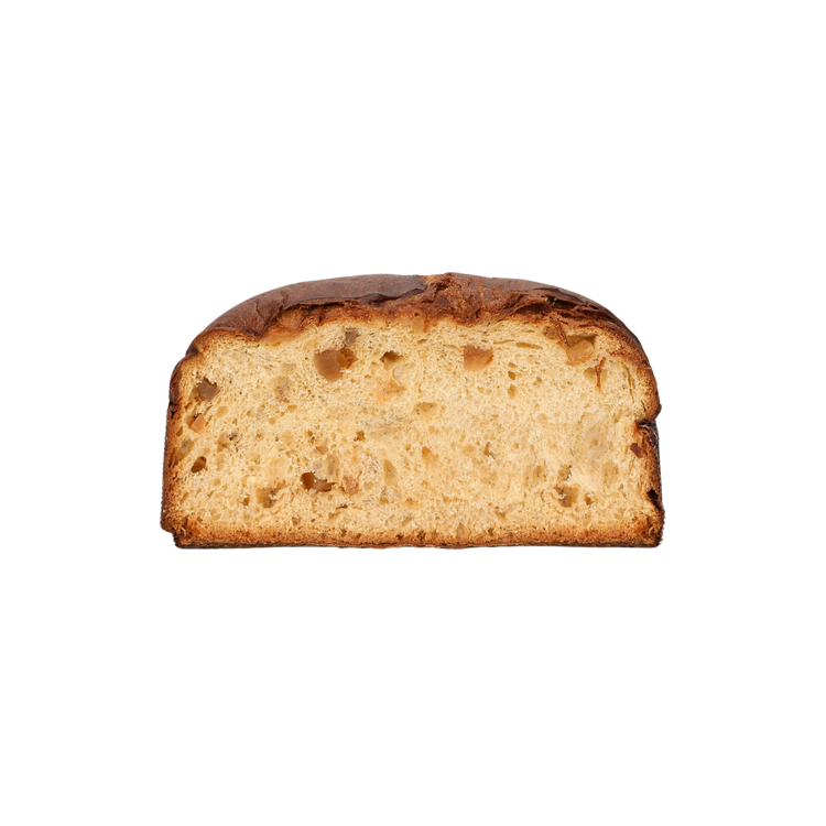 It contains no sultanas and no candied citrus fruit, for a more intense flavour. The panettone is finished with a cross-shaped engraving at the top.