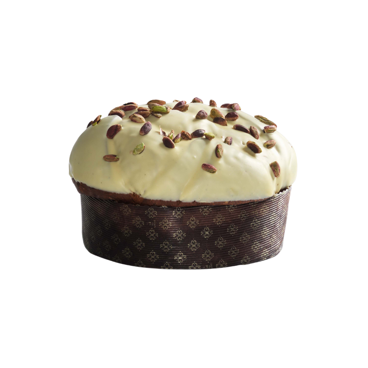 BREAD: Soft wheat flour, BUTTER, sugar, fresh EGGS from free range hens, white chocolate coating (10%) (sugar, whole milk powder, cocoa butter, emulsifier: SOY lecithin, natural vanilla extract), yolk from fresh eggs of free-range hens, natural yeast (wheat flour, water, yeast), PISTACCOCHIO di Sicilia (Pistacia vera) (3%), honey from Sicily, inverted sugar syrup, orange paste (orange peel, sugar, glucose-fructose syrup, lemon juice), emulsifier: mono and diglycerides of fatty acids, cocoa butter, skimmed milk powder, salt, natural vanilla flavouring. May contain traces of other NUTS and LUPIN.
