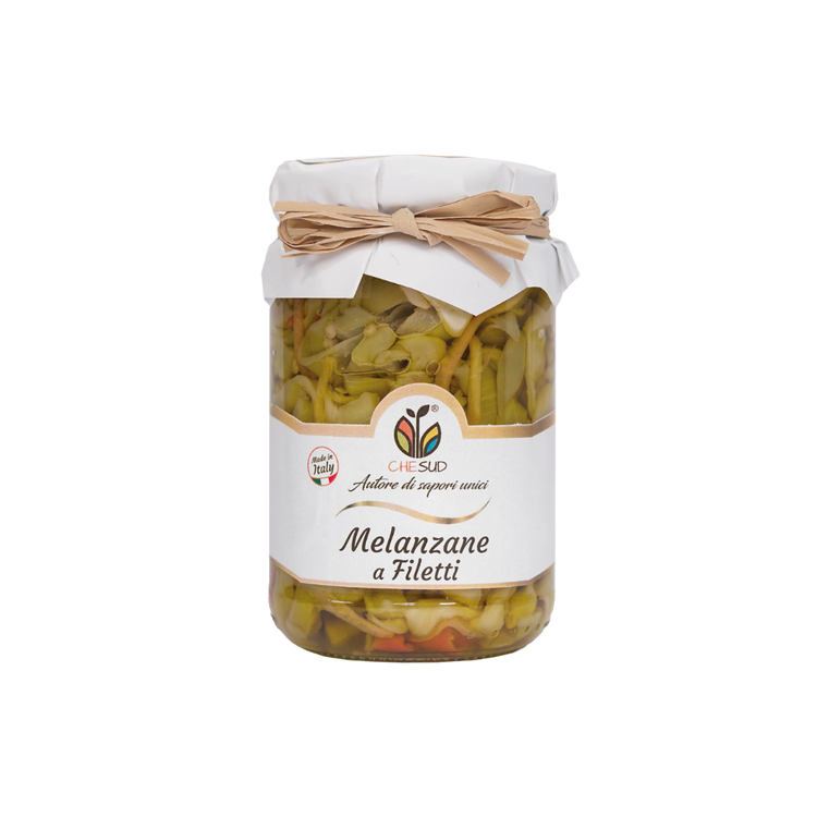 Vengono preparate seguendo metodi artigianali, utilizzando melanzane fresche tagliate a filetti sottili, insaporite con aromi tipici e conservate in olio extravergine di oliva.